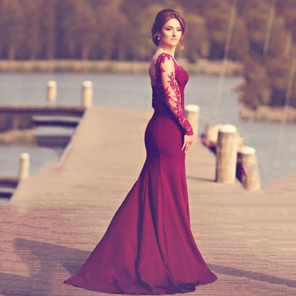 Arabic Evening Dress Long Sleeve Burgundy 2018 Womens Evening Prom Gowns Lace Dubai Kaftan Dress Engagement Party Vestidos Formais Nice Prom Dresses One Of A Ki Velvet Prom Dress Long Sleeve