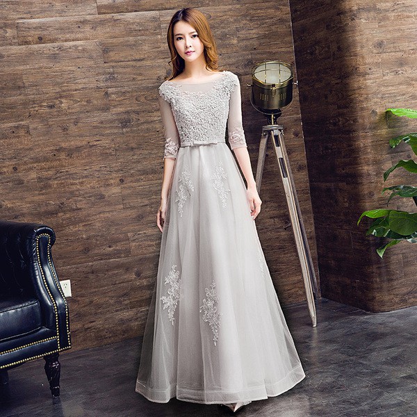 A Line Elegant Minimalist Engagement Prom Dress Off Shoulder Long Sleeve Floor Length Tulle With Pleats Appliques 2020 7999001 2020 119 99
