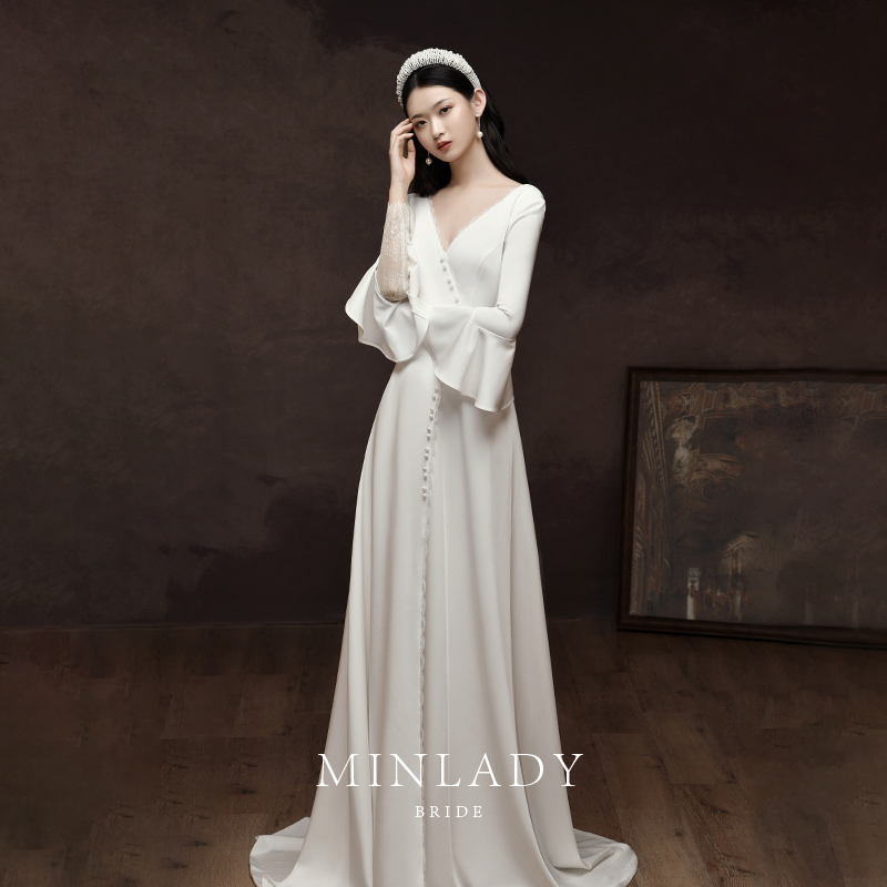 French Style Light Satin Wedding Bridal Gown Trailing Engagement Dress Birthday Party Stain White Gown Trumpet Sleeve Dress Maxi Long Sleeved White Wedding Dress Concert Dress Shopee Malaysia