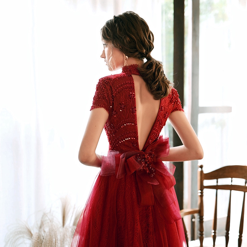 Toast Bride Wine Red Long Sleeve Temperament Stand Collar Autumn Winter Wedding Dress Engagement Shopee Malaysia